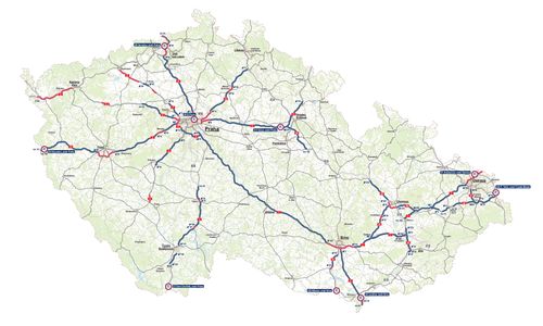 In Czechia, motorways are marked with “D” (Dálnice) and expressways with “R” (Rychlostní silnice). With a few exceptions, all motorways and expressways in the Czech Republic are subject to tolls.